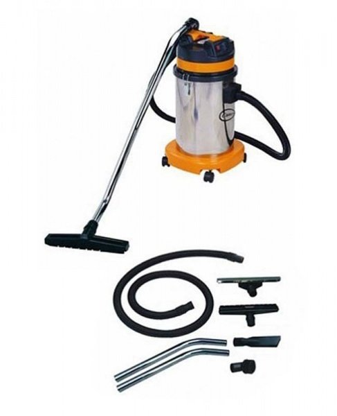 Пылеводосос 30л AFC-575. Стандартная комплектация: гибкий шланг; изогнутая стальная трубка - 2 штуки; насадка для сухой уборки; насадка для сбора жидкости; круглая щетка; щелевая насадка; матерчатый фильтр для сухой уборки.